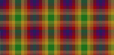 The tartan used for the background is the earliest LGBT tartan to be designed (shown below). It was registered before the founding of the Scottish Register of Tartans in 2009.